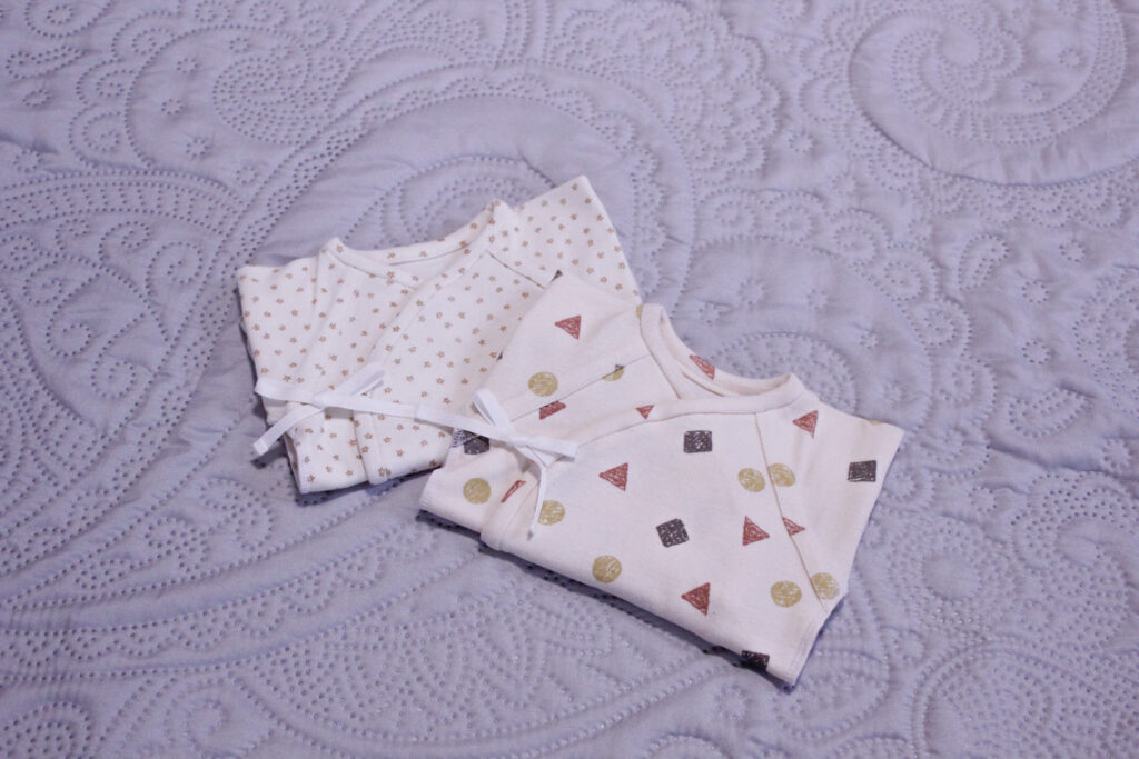 40-45size (〜2500g) 入院中〜退院後のインナーとして、夏場は1枚でもご着用いただけます。 背中側に縫い目がなく、脇も外側に縫い代がくるよう縫い合わせてあるので、肌へのあたりが少ないデザインになっています。 綿100%のフライスニットを使用しており、伸縮性があるためお着替えがしやすく、赤ちゃんの肌を優しく包みます。